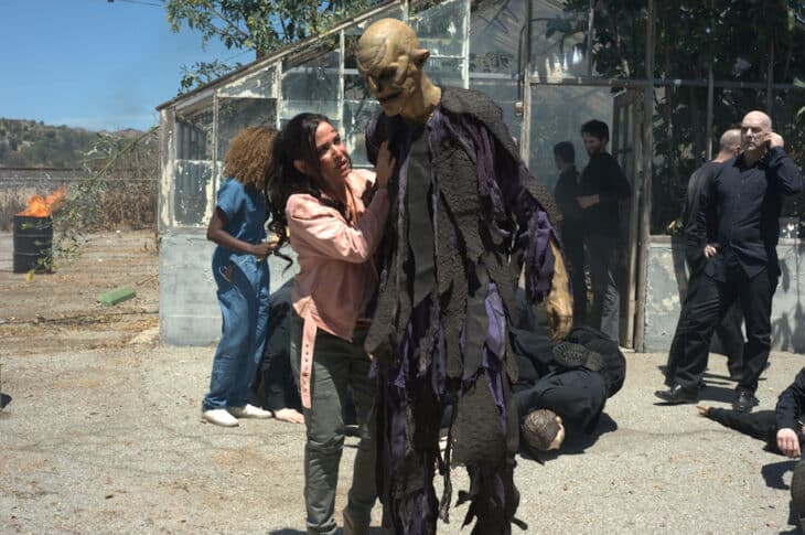 The entire episode, Sam is hot. She’s physically uncomfortable in her own skin, on the movie set where the temperature is boiling, and under her collar. Sam vacillates between merely disgruntled to complete outrage.