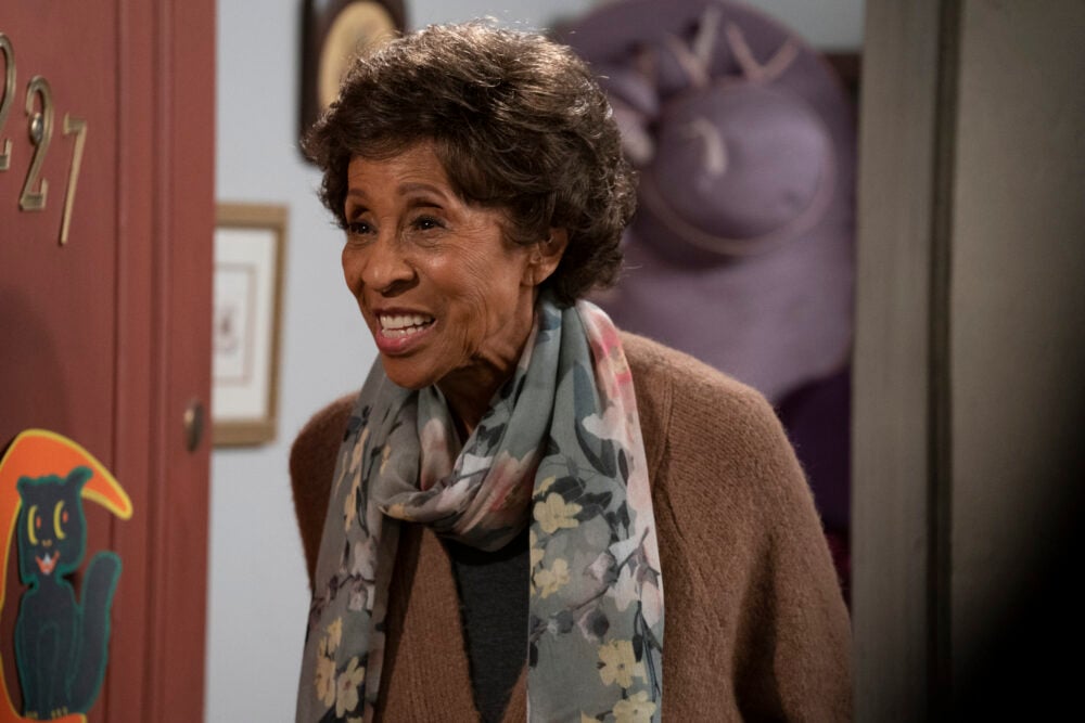 That doesn’t go as planned, but they get some full-sized candy bars out of it, and they even run into a special guest star: Marla Gibbs, who’s living in apartment number 227.