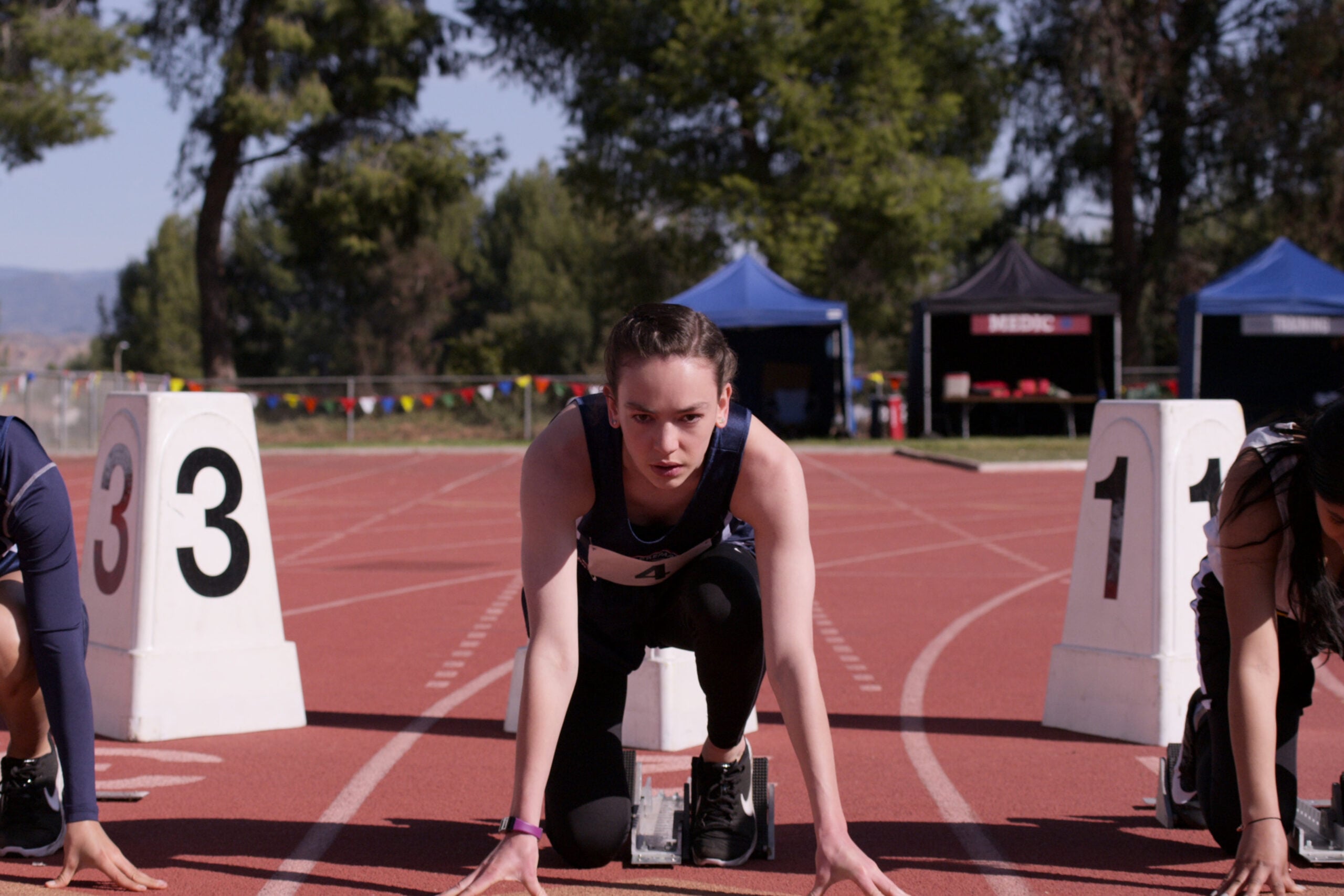 The signs are there early on, including the notice of her damaged cuticles. Then Casey starts actively trying to sabotage her career at this prestigious school, and it all culminates in her freezing up at an important race.