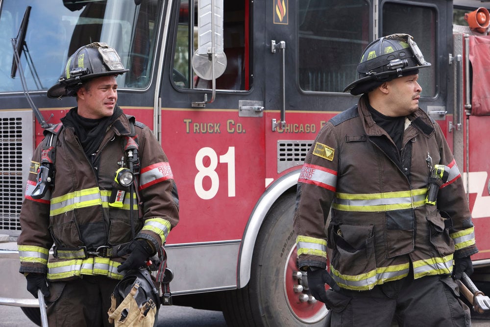 CHICAGO FIRE — “Finish What You Started” Episode 1019 — Pictured: (l-r) Taylor Kinney as Kelly Severide, Joe Minoso as Joe Cruz — (Photo by: Adrian S. Burrows Sr./NBC)