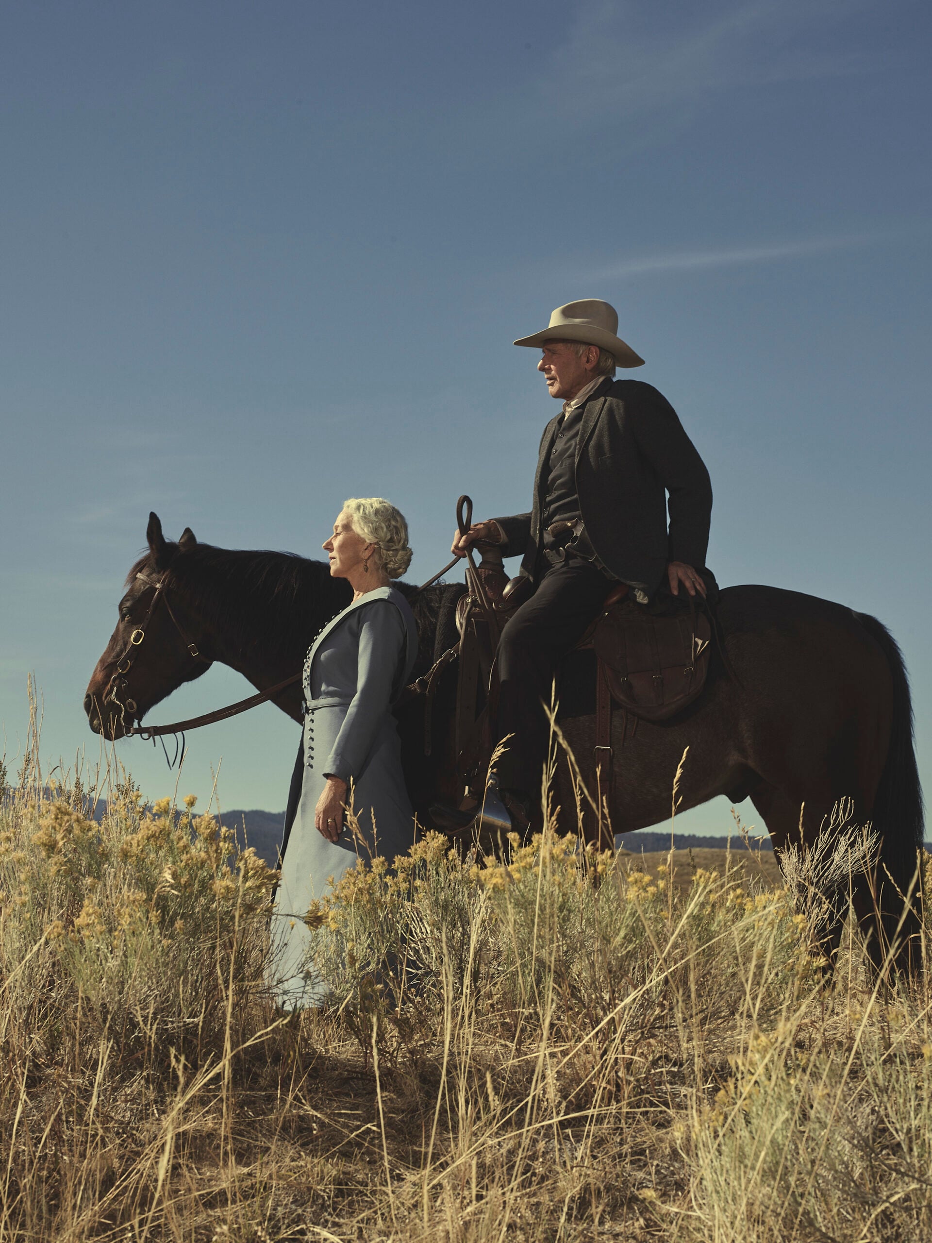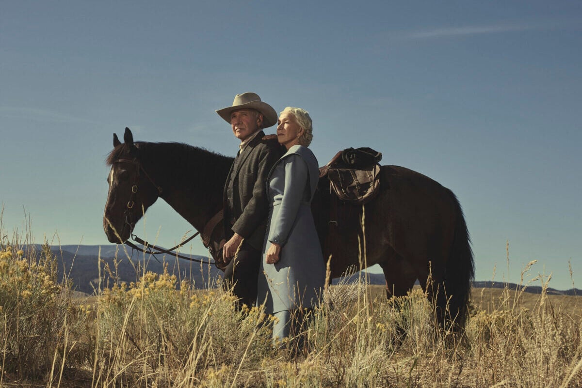 Harrison Ford as Jacob Dutton and Helen Mirren as Cara Dutton in 1923, streaming on Paramount+ 2022. Photo credit: James Minchin III/Paramount+