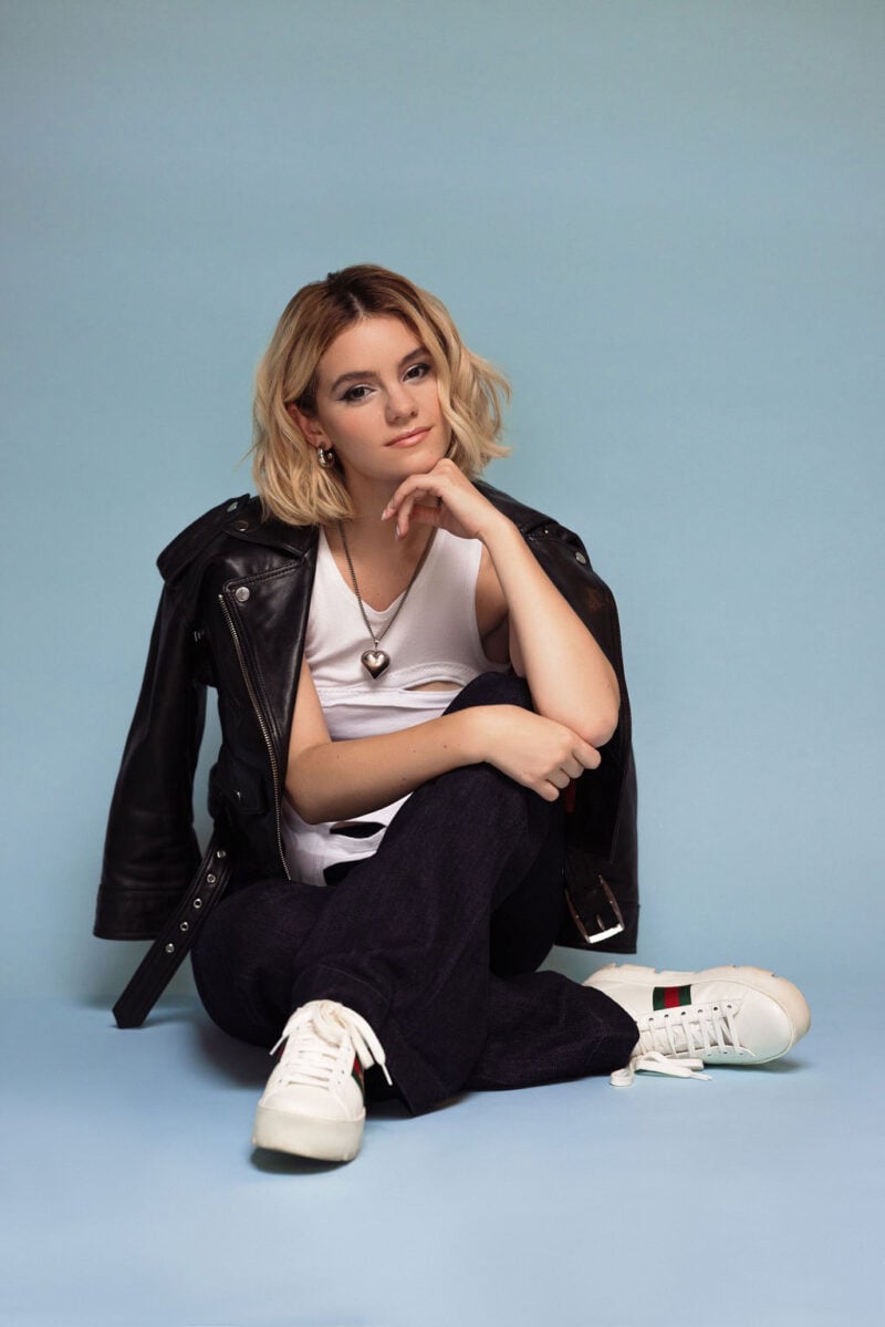 “I had this one morning on set where I was getting into costume, and I was putting on my Y2K stuff. And I suddenly realized — because I was only three in 1999, but that Y2K fashion that stretched into the early 2000s — I suddenly realized that I was, especially as Amy, being blonde, stepping into this version of these, what I called the big girls, that I really admired when I was growing up. The girls with the blonde hair and the crop tops that were showing their belly, and the cool shoes. I remember being really, really little and just thinking they were the coolest people in the world.”