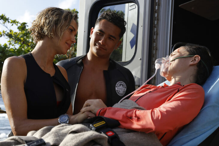 The North Shore team springs into action, splitting into two teams as they have no exact location for the couple’s crash. Laka and Will search one side of the beach while Jennings and Em go the other way.