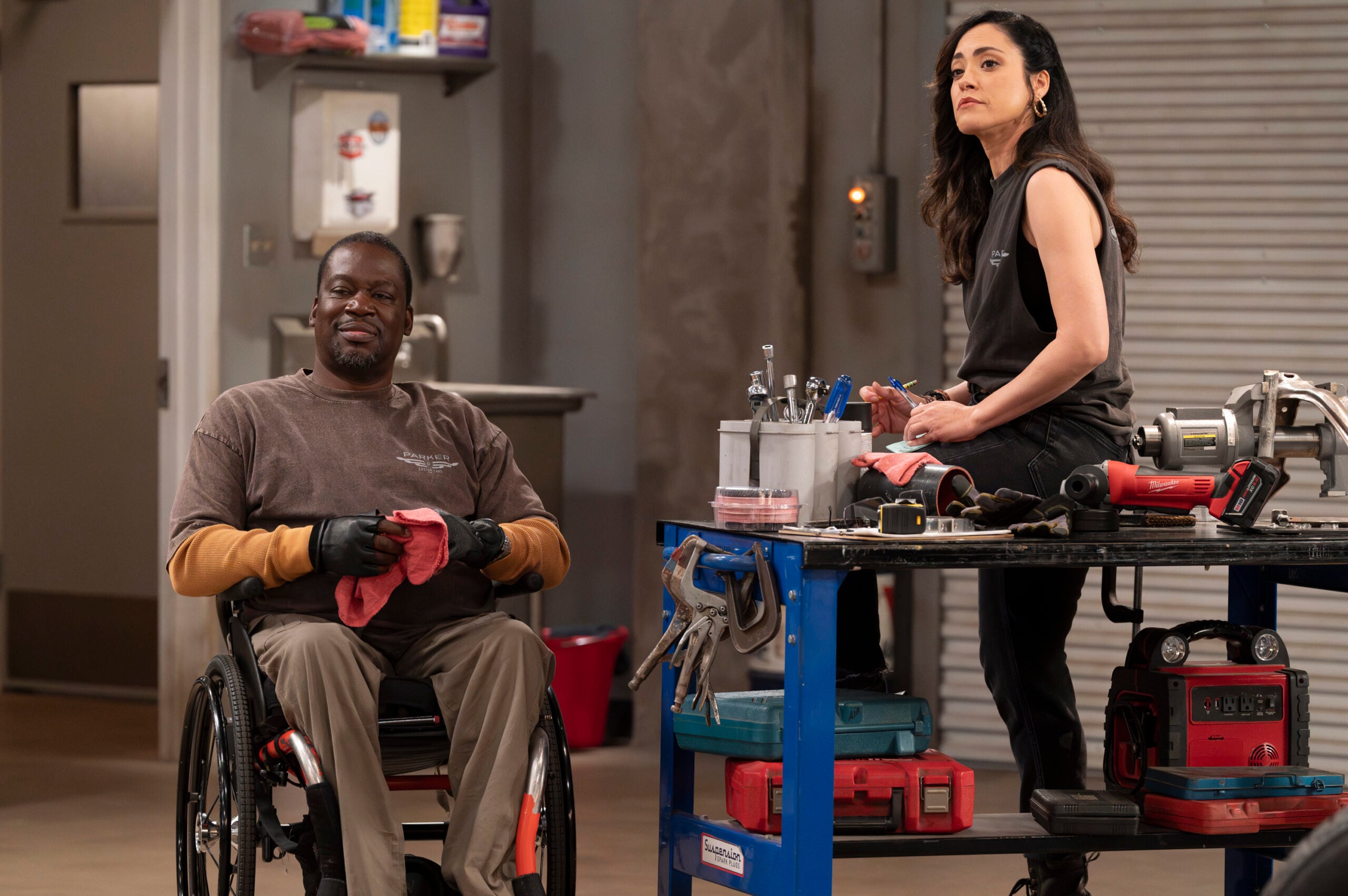 Also working at the car restoration shop are Gabriel (Seann William Scott), Stitch (Daryl “Chill” Mitchell), and Frankie (Cynthia Quiles).