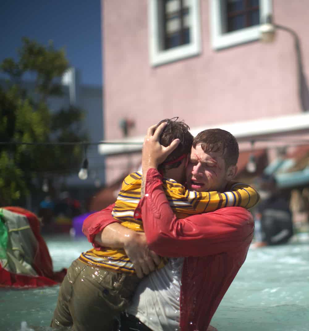 Technically, the event actually happens at the very end of the previous episode, but “Survivors” rehashes the start of the event and its subsequent reaction. Buck and Eddie are standing next to the ambulance and fire trucks at an emergency call when suddenly Eddie’s face contorts into a look of shock, and Buck is sprayed with a ton of blood.